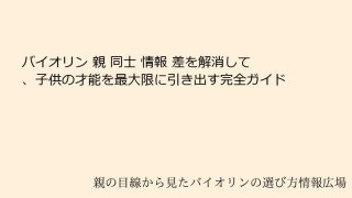 バイオリン 親 同士 情報 差を解消して、子供の才能を最大限に引き出す完全ガイド