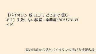 バイオリン教育を始める親必見!口コミの魅力と「どこまで信じる?」のリアルな疑問子供にバイオリンを習わせたいと思っている親御さんにとって、インターネット上の口コミは欠かせない情報源ですよね。バイオリンという楽器は、ただの習い事ではなく、子供の...