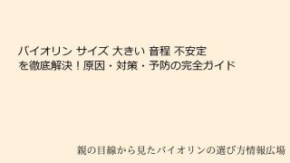 バイオリンのサイズが大きいと音程が不安定になる?まずは問題の概要を理解しようバイオリンを演奏する中で、「バイオリン サイズ 大きい 音程 不安定」という悩みを抱えている方は少なくありません。このようなキーワードで検索してこの記事にたどり着い...